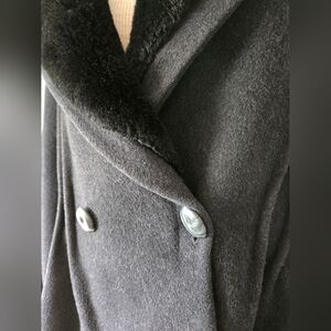 VINTAGE XCEPTION virgin wool Black Double-Breasted Coat with faux fur collar. 14