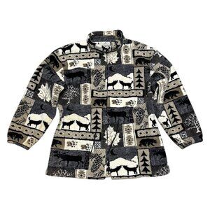 VINTAGE Y2K Black Mountain Sherpa Fleece Winter Wolves Jacket Womens 2XL