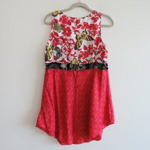 VINTAGE Y2K CABI 100% Silk Asian Inspired Floral Butterfly Babydoll Top - Size M
