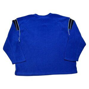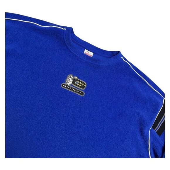 Stay warm and stylish with this vintage Y2K Disney GRUMPY Snow White fleece sweatshirt in a classic blue color. Featuring a crew neckline, long sleeves, and a regular fit, this retro sweatshirt is perfect for any season.