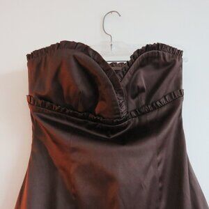 VINTAGE Y2K RW & CO Espresso Brown Satin Sweetheart Tulle Dress - Size US 0