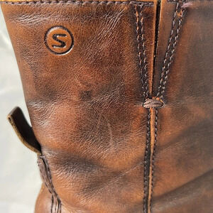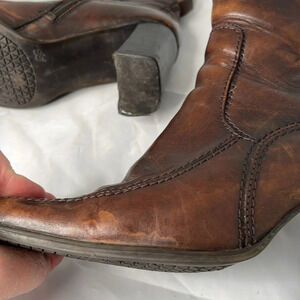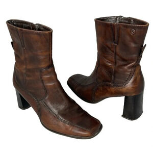 VINTAGE Y2K Spring Distressed Brown Leather Square Toe Over the Ankle Boots 36