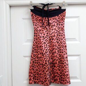 Vintage Y2K leopard crushed velvet velour stretchy halter dress
