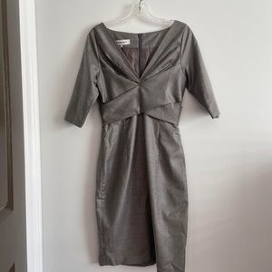 VINTAGE YSL SILK COTTON RARE PREPPY OFFICE ACADEMIA V NECK WRAP COCKTAIL DRESS