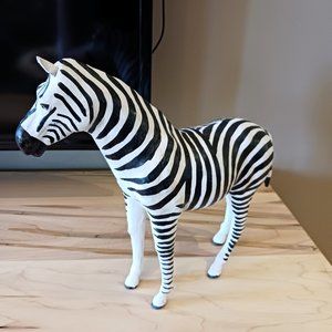 VINTAGE ZEBRA Art Sculpture HANDMADE LEATHER PAPER MACHE w/glass eyes 12" tall