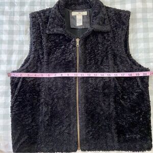 VINTAGE black Amerique du Nord reversible leather vest Large faux fur sleeveless