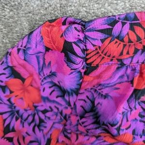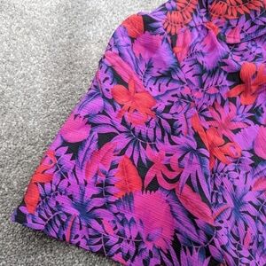 Vintage floral blouse button down shirt short sleeve purple & pink women's Large
