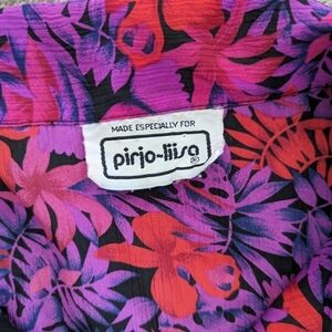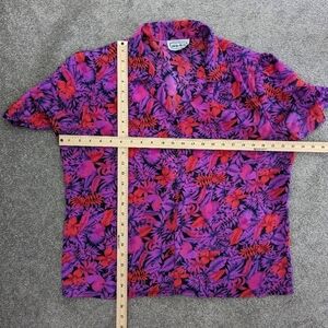 VINTAGE floral blouse button down shirt short sleeve purple & pink women's Large