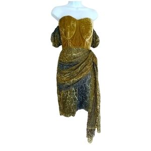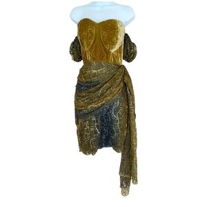 Vintage gold black velvet corset sparkly mythical party goth punk off shoulder dress