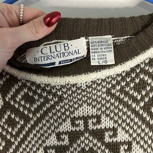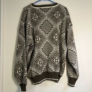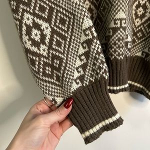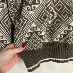 VINTAGE - knit sweater in brown/tan and cream colour. Made with 100% acrylic. Men’s size large but fits as a women’s oversized small or medium as well, see below for flat lay measurements. Perfect condition, no flaws.