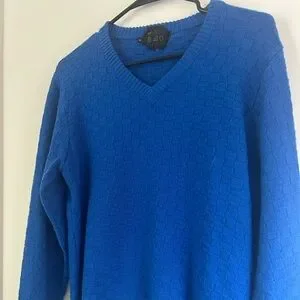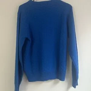 VINTAGE - royal blue v neck knit sweater. Small hole near armpit, barely noticeable but worth mentioning. Good used condition otherwise.