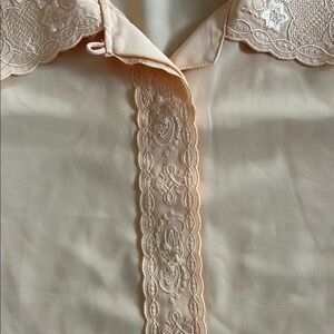 VINTAGE peach Button Down Shirt with Dress Collar scallop hem sz 12