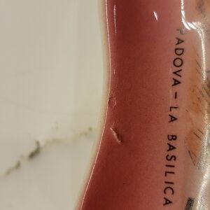 #529 Vintage souvenir from Padova La basilica butter plate dish triangle shape pink gold 4" x 5"w