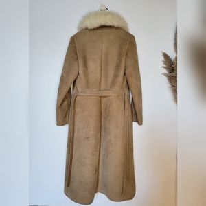 Leather Attic vintage tan suede fur lined with fox fur collar. 100% real fur and real leather. Canadian made. Button up and waist tie.