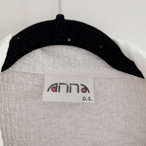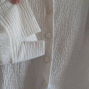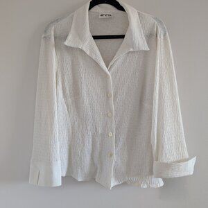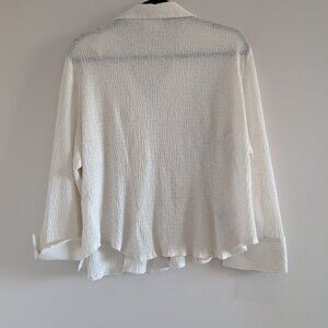 Lightweight button up blouse with a crepe like fabric. Vintage and in good condition. Size is not identifiable, fits like a medium.