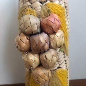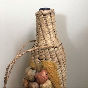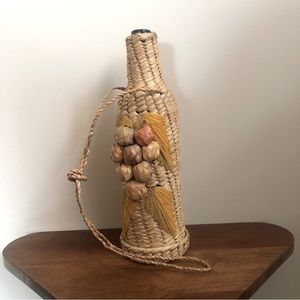 Vintage wicker/rattan wine bottle holder in very good vintage condition from a pet friendly and smoke free home. The wool is a little bit pilly from age. Perfect piece for your Boho, vintage decor!
