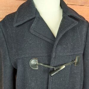 VINTAGE wool pea coat with leather buttonhole winter coat plaid lining fit large