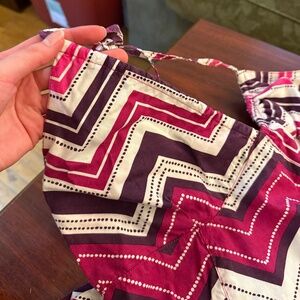 Super cute vintage y2k halter dress with chevron design. Neckline can be sinched (almost like a bathing suit top). Has smocked back with no zipper. Pink and purple with white! Brand is h&m.
