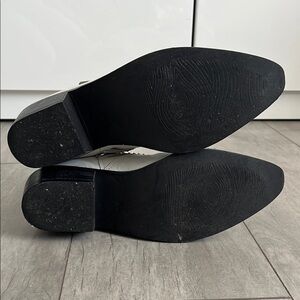 Step out in style with these chic white studded ankle boots. Perfect for adding a touch of elegance to any outfit. Side zipper closure. They have a vintage wash to them. I never had a chance to wear them.