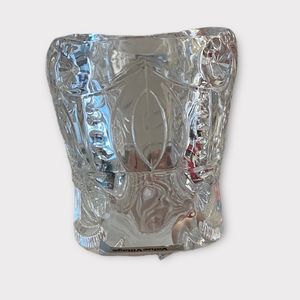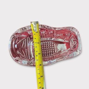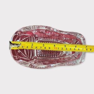 This is a beautiful heavy glass. Very sturdy. Made of Avon crystal. Beautiful Christmas display for your candy, goodies ect.
