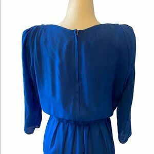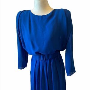 VINTAGE Chiffon Cobalt Midi Dress W/ Shoulder Pads