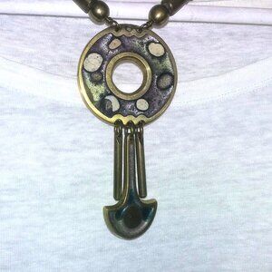 VINTAGE🌻Mid-century 70's ARTISAN BRASS ENAMEL INLAY CHOCKER NECKLACE