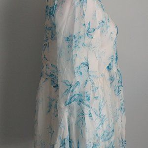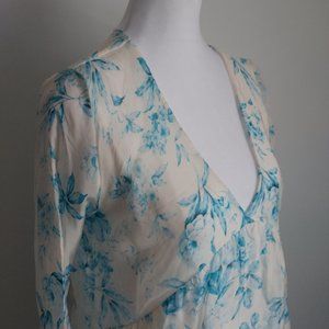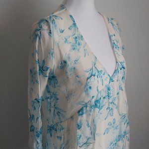 VIOLA BORGHI ITALY * Ophelia Style Silk Blouse Blue & White Floral Baby Doll