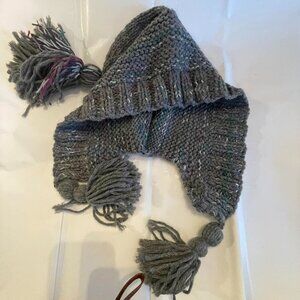 Viv Voveo hat. 50% merino, 50 Alpaca. Stay warm in the best design inspired by the Andeans style. This beautiful hat is handknit in Canada. Dark gray with a hint of burgundy, cream and turquoise. it has chunky tassles and covers the ears perfectly. OOAK and NWT a must for our Canadian winters. Boho