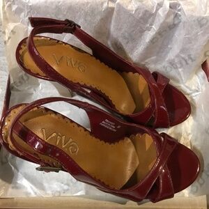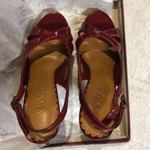 VIVA Sandal Heels Pumps Women's Size 5.5 Burgundy Red Brown Ankle Strap Open Toe