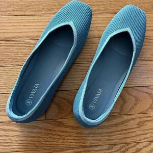 Experience all-day comfort with VIVAIA's chic blue knit flats. These stylish shoes are perfect for any occasion, offering both elegance and ease.