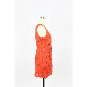 VIVIENNE TAM Dark Orange Red Linen Cotton Venetian Lace Mini Shift Dress, Size 0