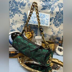 🆕 VIVIENNE WESTWOOD 🧿 NWOT Cindy Cylinder Shoulder Bag, Green Metallic AUTH