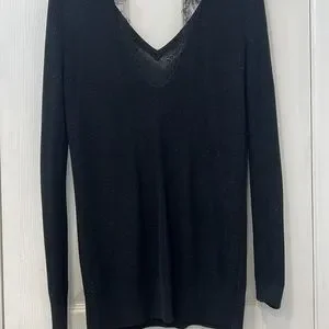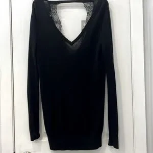 Sweater with low cut back and lace detail. Great shape and very cute fitted top - could fit a small and smaller medium even though it is XS.