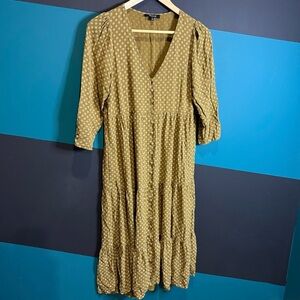 V-Neck Tiered Button-Front Midi Dress in Daisies Forever size 4