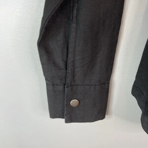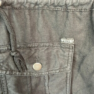 Women’s black Volcom “Day Dreamer” Linen Blend Utility Jacket. Zipper and Snap Closure.