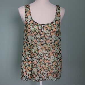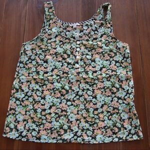 Style: Sleeveless, Floral Print, Faux Buttons on Front
