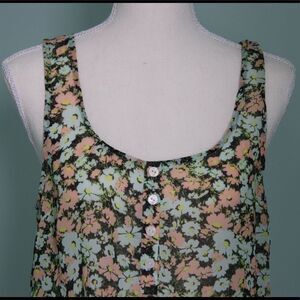 Style: Sleeveless, Floral Print, Faux Buttons on Front