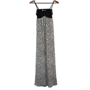 VOLCOM Playa Maxi Dress Open Back Black White Print Fit Bodice Beachy Boho XS