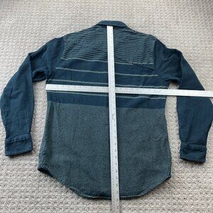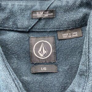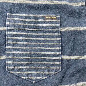 VOLCOM Shirt Men Large L Navy Blue Striped Heavy Cotton Slim Fit Button Up Polo