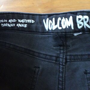 VOLCOM jeans ripped knees distressed black skinny high waisted ankle raw hem 6