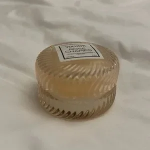 Brand new Voluspa macaron candle in the scent Rose Champs. Smells absolutely incredible! Beautiful pale pink glass candle with lid.