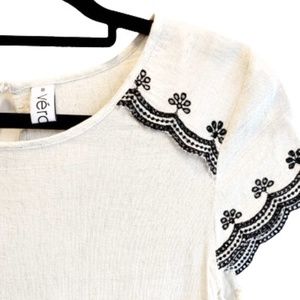 VÉRO Off White Woven Black Embroidered Detailed Short Sleeve Tee Blouse Top 8