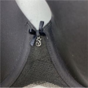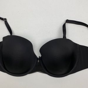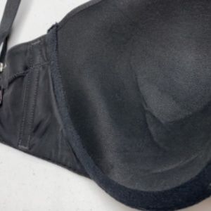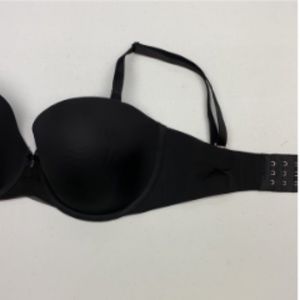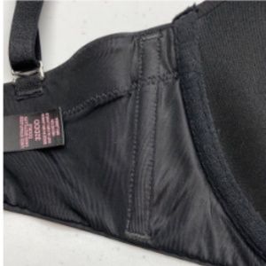 In excellent gently used condition, this bra can be worn with or without straps because of extra support in its band: side stays and heavy strips of elastic. The cup itself has molded foam light padding and underwire.