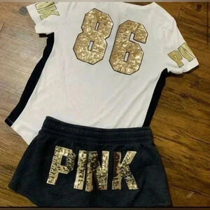 VS PINK BLING 86 SHIRT/ RETRO SHORTS OUTFIT XS/M