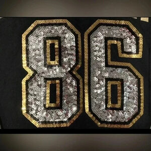 Has 86 bling on the front as well glitter love pink.