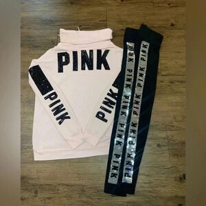 VS PINK BLING SWEATSHIRT/ YOGA LEGGINGS OUTFIT M