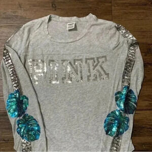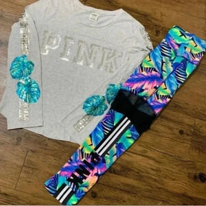 VS PINK BLING TROPICAL PALM TSHIRT/ ULTIMATE MESH LEGGINGS OUTFIT S