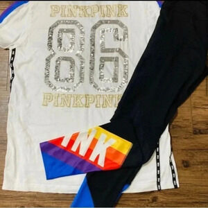 VS PINK RAINBOW BLING 86 TSHIRT/ ULTIMATE LEGGINGS OUTFIT SET XL