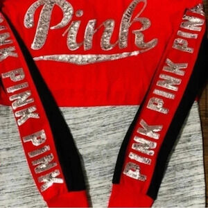 Victoria’s Secret Pink Red Bling Hoodie/ joggers Outfit Set S.