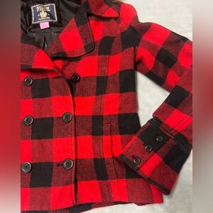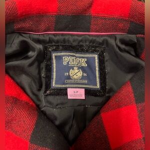 VS PINK Red and Black Plaid Peacoat with Faux Fur Hood